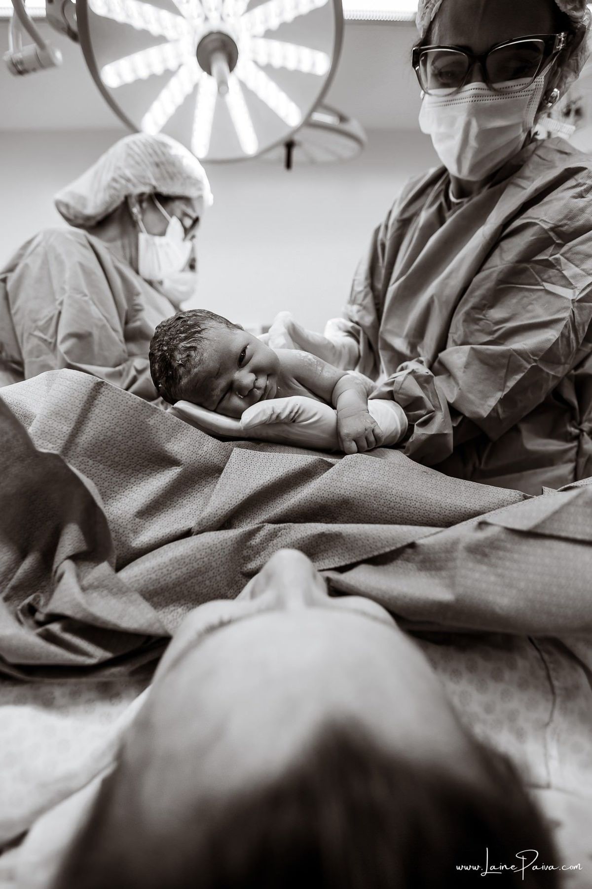 O parto foi cesárea no Hospital da Unimed, conduzido por uma equipe cuidadosa e dedicada. A obstetra Luane Barros, a anestesista Fanny, a pediatra Marizete, a instrumentadora Aparecida, a primeira auxiliar Kaline e a berçarista Ana Lucia fizeram parte desse momento tão importante, cada uma contribuindo para que tudo acontecesse com segurança e carinho.